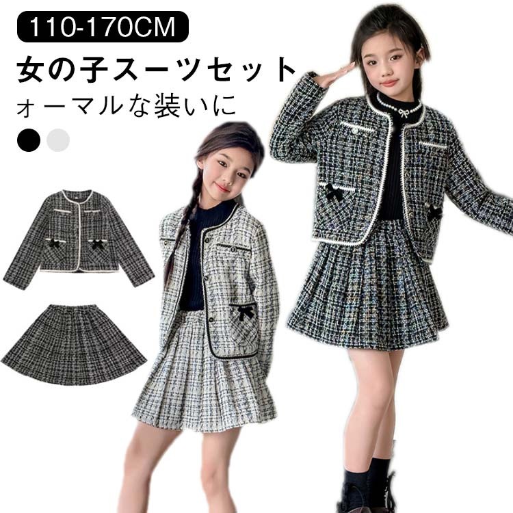 女の子 セットアップ 2点セット 卒園式 スーツ セット フォーマル 上下セット 子供スーツ ノーカラージャケット ミニスカート ジュニア 春秋用 入学式 発表会 結婚式 七五三 卒業式
