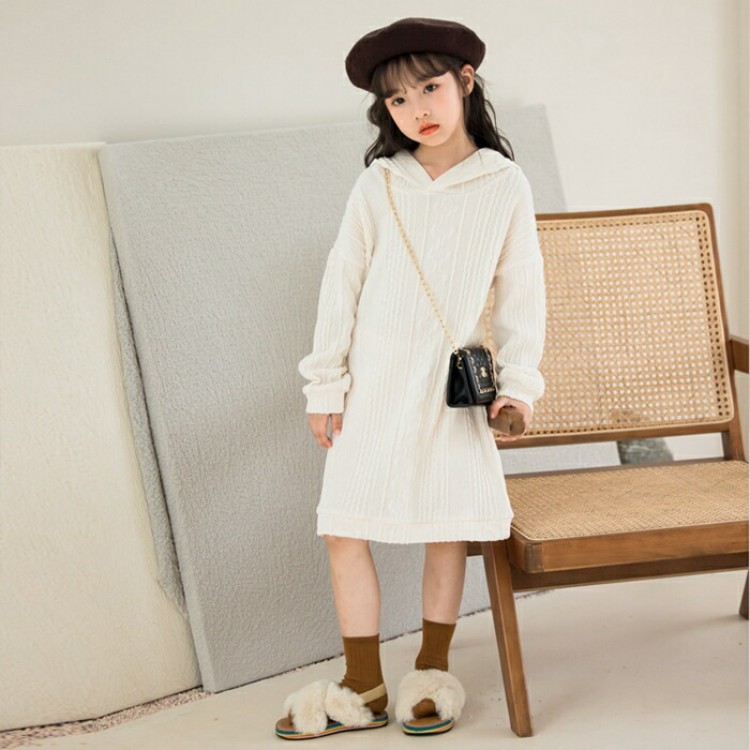 秋冬 子供服 女の子 セーター ワンピ キッズ用 長袖 帽子付き ニットワンピース お洒落 ニット ホワイト 韓国 子ども服 普段着 110cm 130cm 140cm 150c 120cm