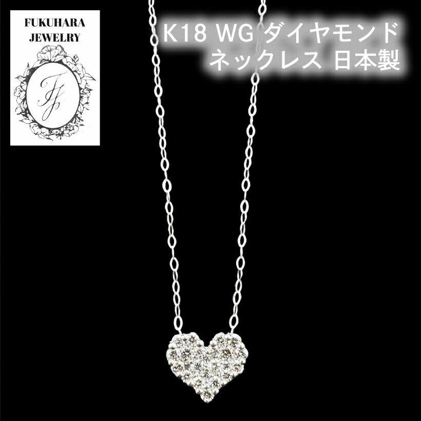 【厳選】K18 ネックレス ハート ダイアモンド【品質保証書付】ホワイトゴールド 40cm 50cm 18金 大人 レディース 高品質 デート パーティー プレゼント ギフト 記念日 金 go 誕生日