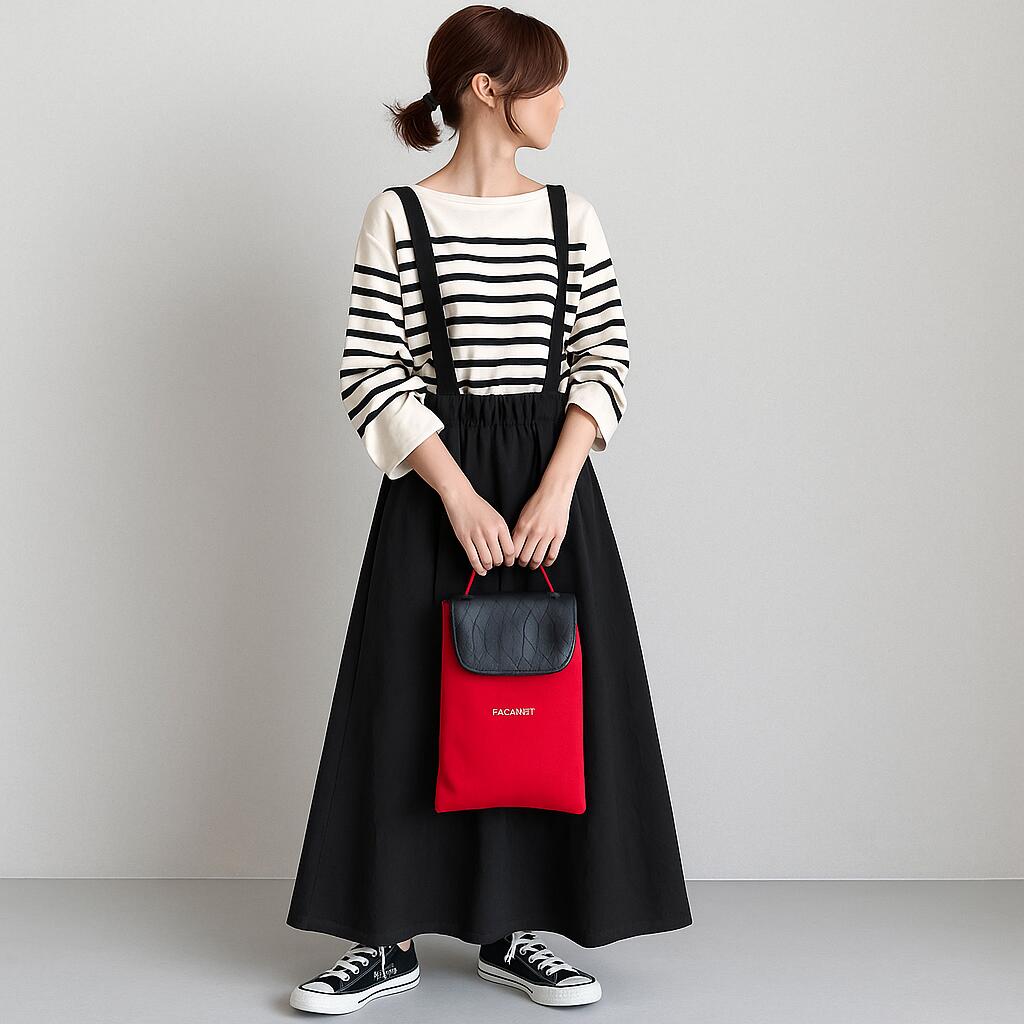大人のゆるカジュアル、季節を問わず使える万能デニムサスペンダードレス。