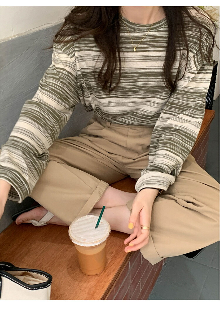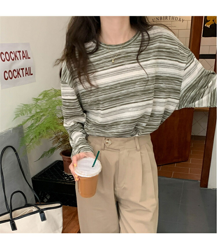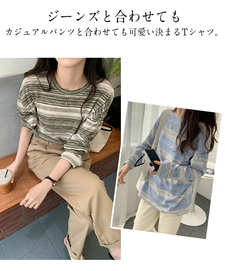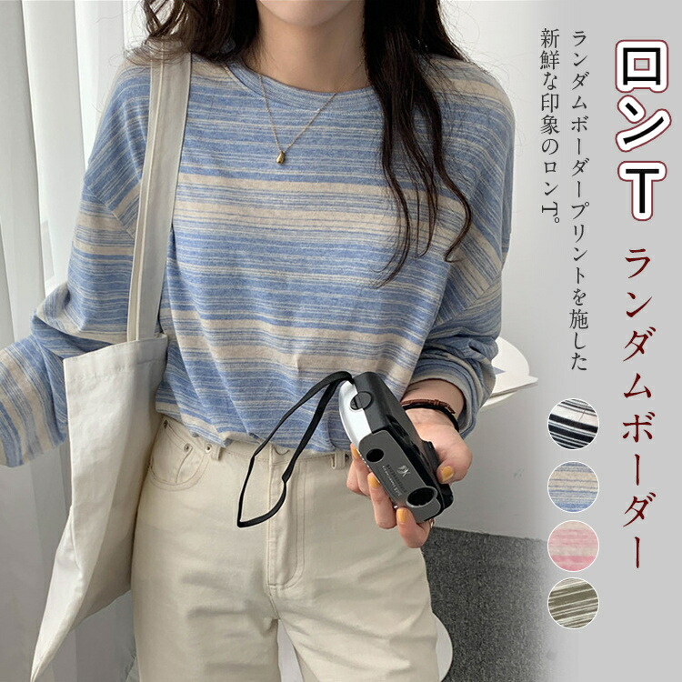 ボーダー柄 ロンT 長袖 Tシャツ レ レディースファッション 人気 ブラック グリーン ピンク ブルー XL(Mサイズ相当) 2XL(Lサイズ相当)