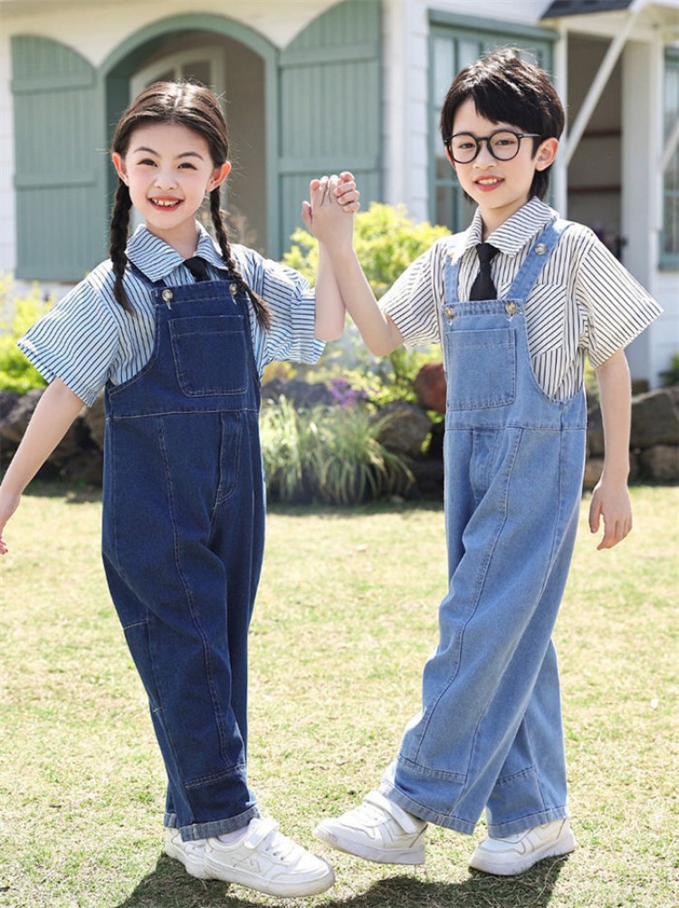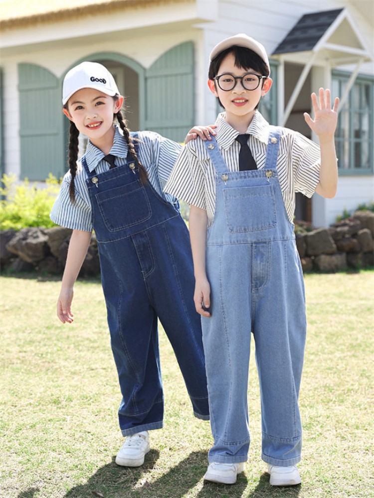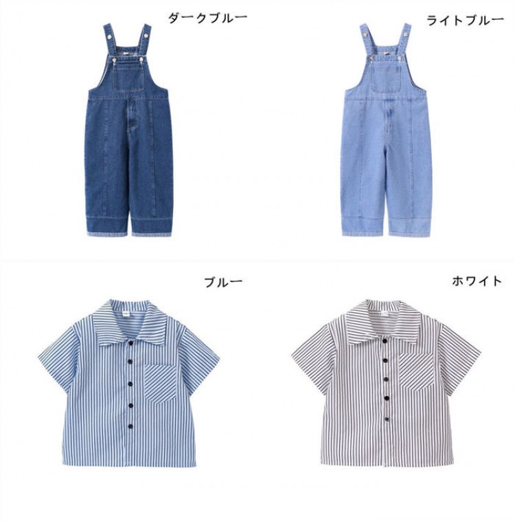 100cm-180cm 単品 ダンス衣 キッズ ベビー マタニティ 特集 サロペット-ダークブルー サロペット-ライトブルー シャツ-ブルー シャツ-ホワイト 100 110 120 130 140 150 160 170 180