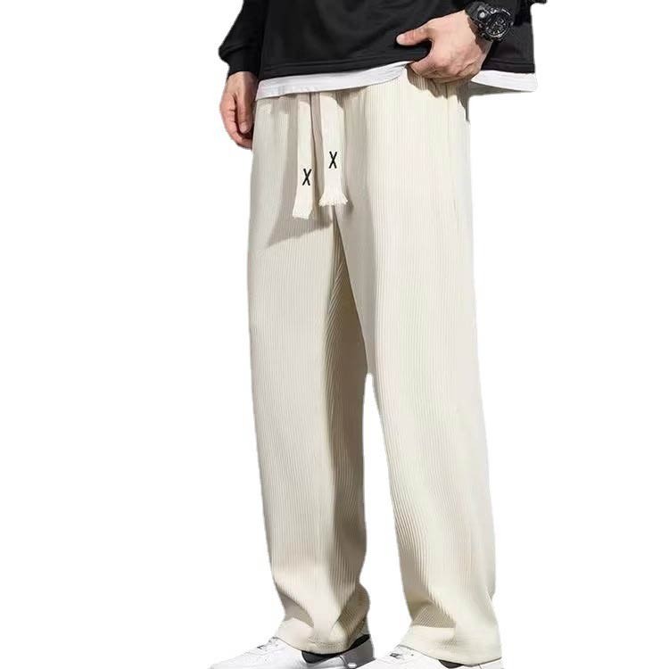 涼しい 長ズボン ゆったり ロングパン ブラック アイボリー ライトグレー M L XL 2XL 3XL 4XL 5XL