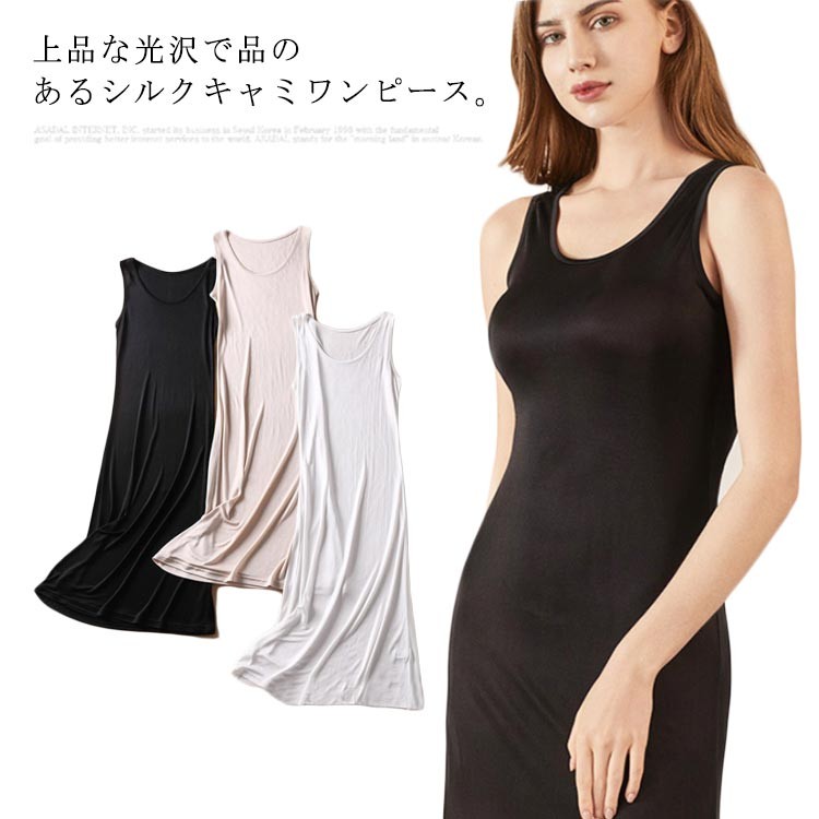 タックトップ ワンピース シルク ペチ ホワイト ブラック 肌色 M L XL 2XL