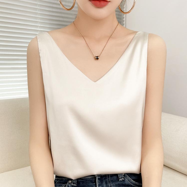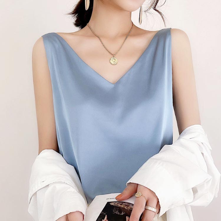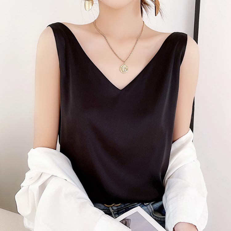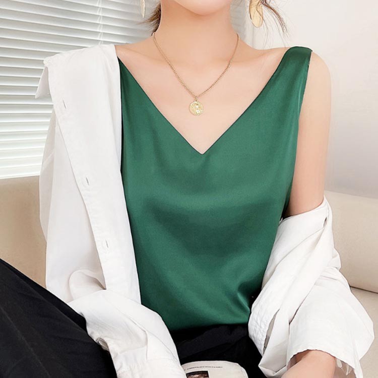 サテン タンクトップ Vネック キャミ インナー 下着 ナイトウエア 豊富 ホワイト ブラック グリーン ダークグリーン ネイビー ブルー オレンジ グレー ライトベージュ S M L XL 2XL 3XL