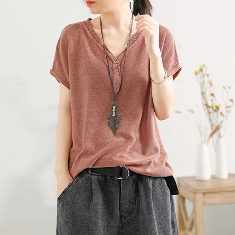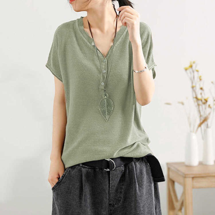 サマーニット 半袖 Vネック レディー トップス Tシャツ カットソー 特集 1 2 3 4 5 6 S M L XL 2XL 3XL