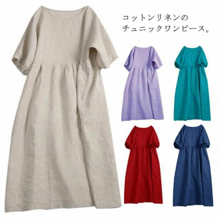 リネンワンピース マキシンピース レデ ベージュ ネイビー レット ブルー パープル M L XL 2XL 3XL 4XL
