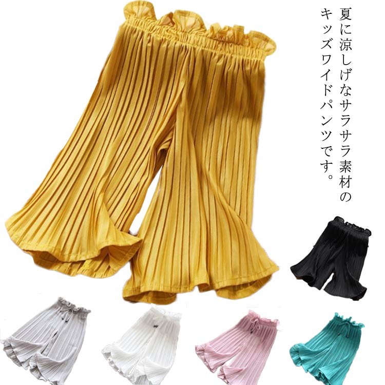 子供服 女の子 ワイドパンツ 夏物 ガ キッズ ベビー マタニティ 新作 イエロー ブラック ホワイト ピンク グリーン グレー 100 110 120 130 140 150 160
