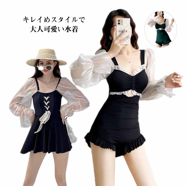 水着 レディース 体型カバー 長袖 U レディースファッション 新作 ブラックA ブラックB グリーン S M L XL