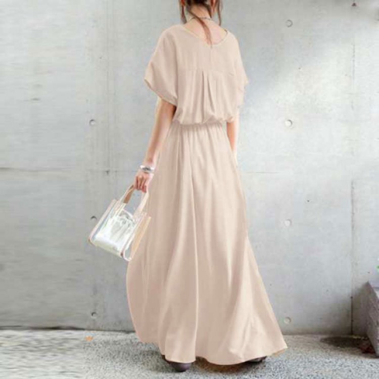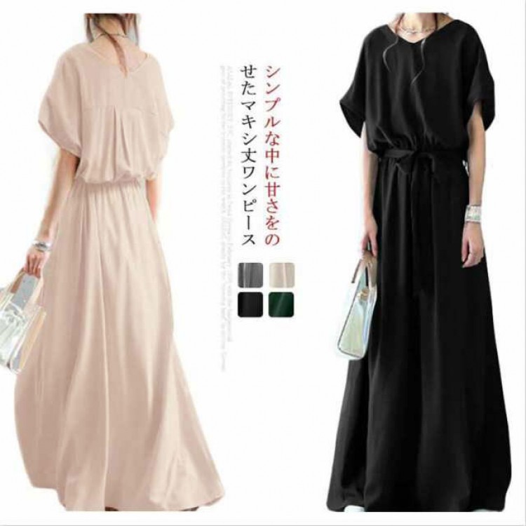 マキシワンピース Vネック マキシ丈ワ グリーン イエロー グレー ブラック S M L XL 2XL 3XL 4XL