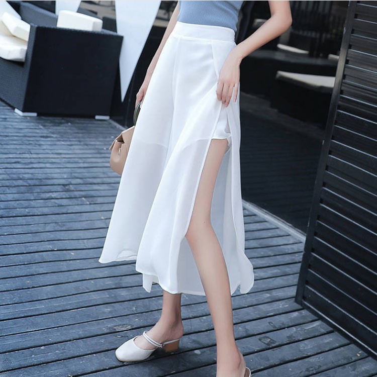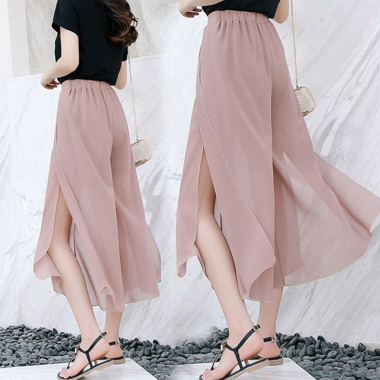 シフォン ガウチョパンツ ワイドパンツ ホワイト ライトグレー ブラック ピンク S M L XL 2XL 3XL