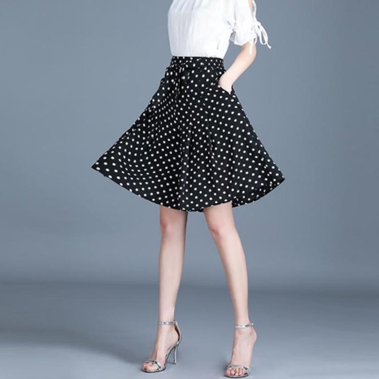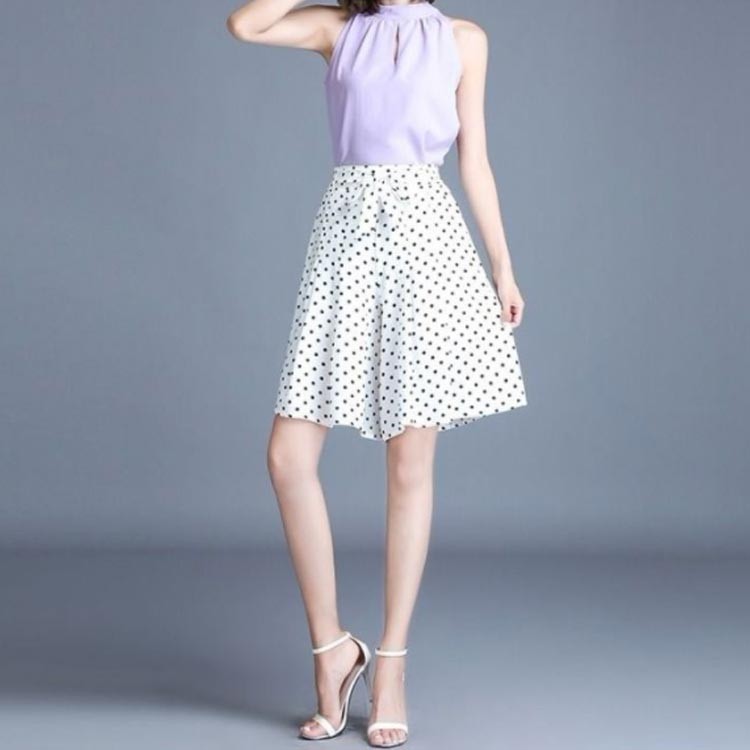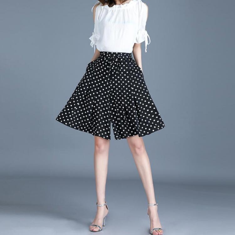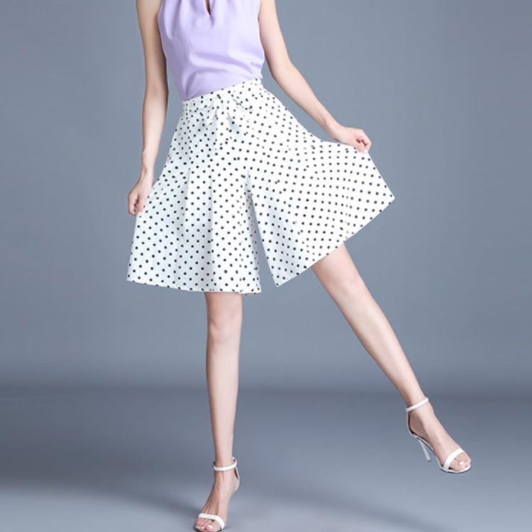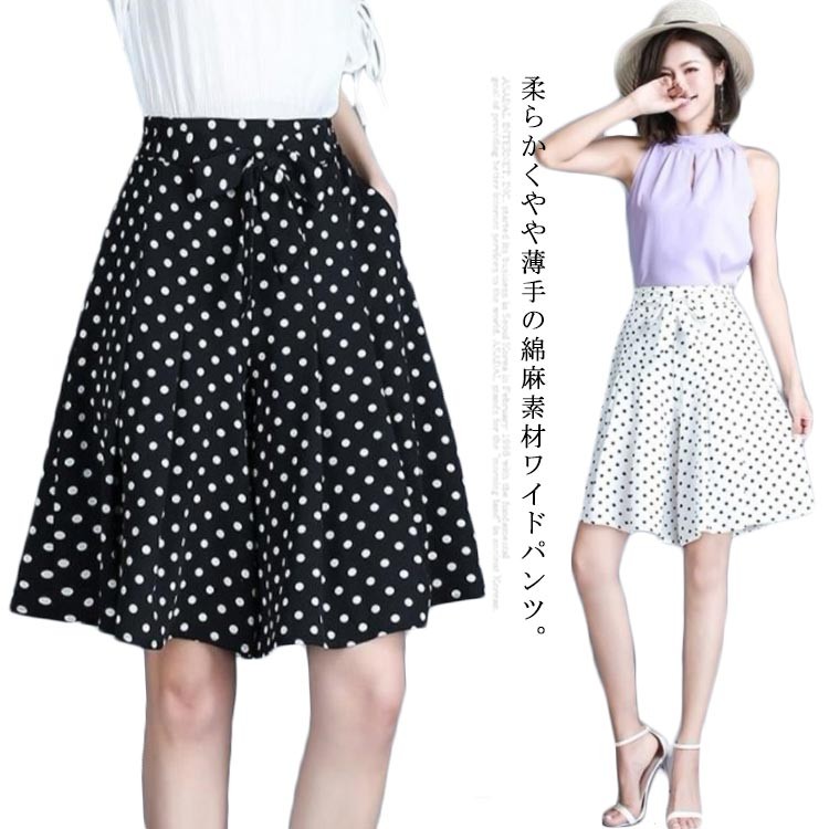 ドット柄ワイドパンツ ガウチョパンツ ホワイト ブラック M L XL 2XL 3XL 4XL