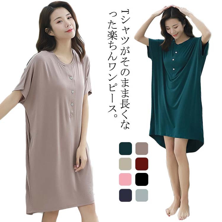 Tシャツ 半袖 ロング ワンピース テ トップス Tシャツ カットソー 通販 ブラック ライトグレー ダークグリーン ワインレッド ネイビー ピンク ダークグレー ベージュ