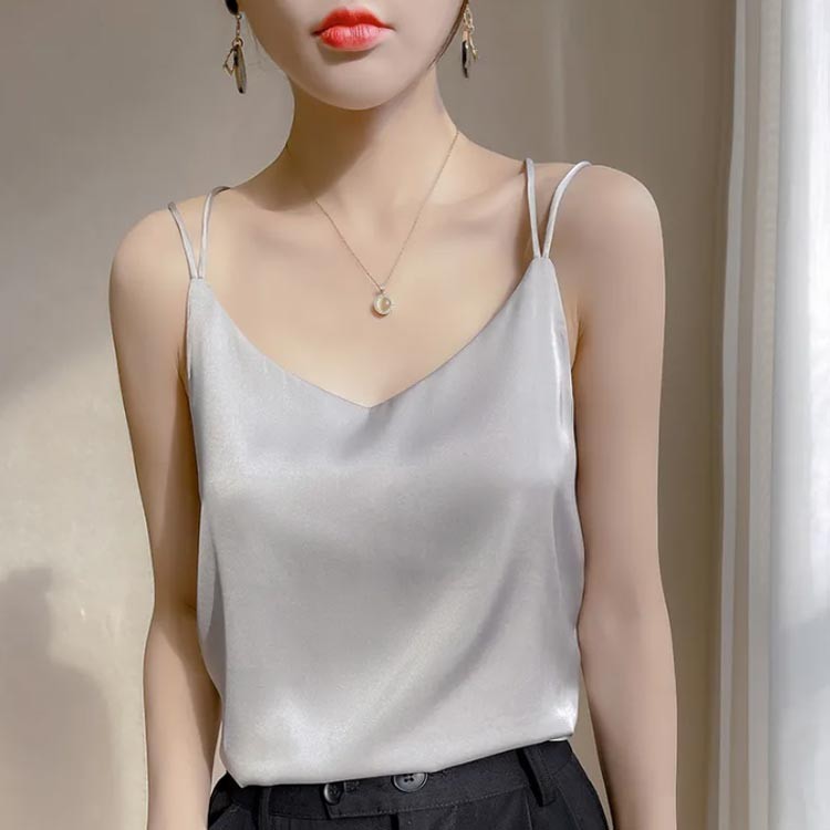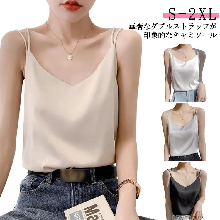 キャミソール サテン レディース イン インナー 下着 ナイトウエア 早い者勝ち ホワイト グレー ブラック ベージュ S M L XL 2XL