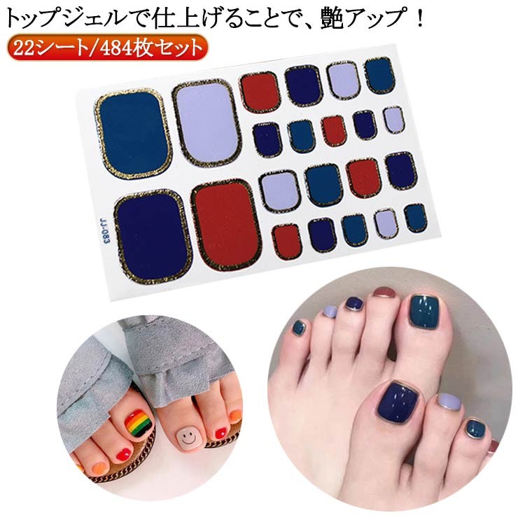 ジェルネイルシール 貼るだけ フット ペディキュア ジェルネイルステッカー フルカバータイプネイルシール ネイルシール 22シート フットネ 貼るだけで完成 ネイル 484枚セット