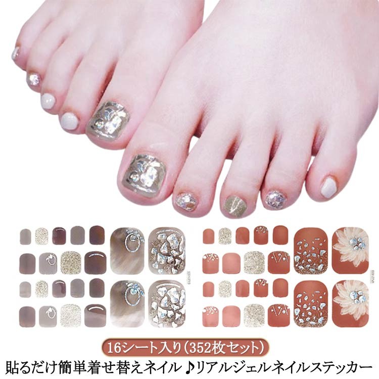 リアルジェルネイルステッカー ネイル 硬化 ネイルシール 貼るだけ ジェルネイルシール 16シート入り 352枚セット セルフネイル ジェルネイル フット ネイルステッカー 北欧