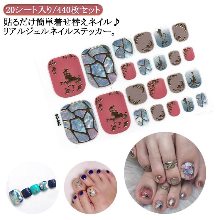 貼るだけ ネイル フットタイプ 20シート入り 440枚セット ネイルステッカー ジェルネイルシール 花 北欧 セルフネイル ネイルシール リアルジェルネイルステッカー ジェルネイル