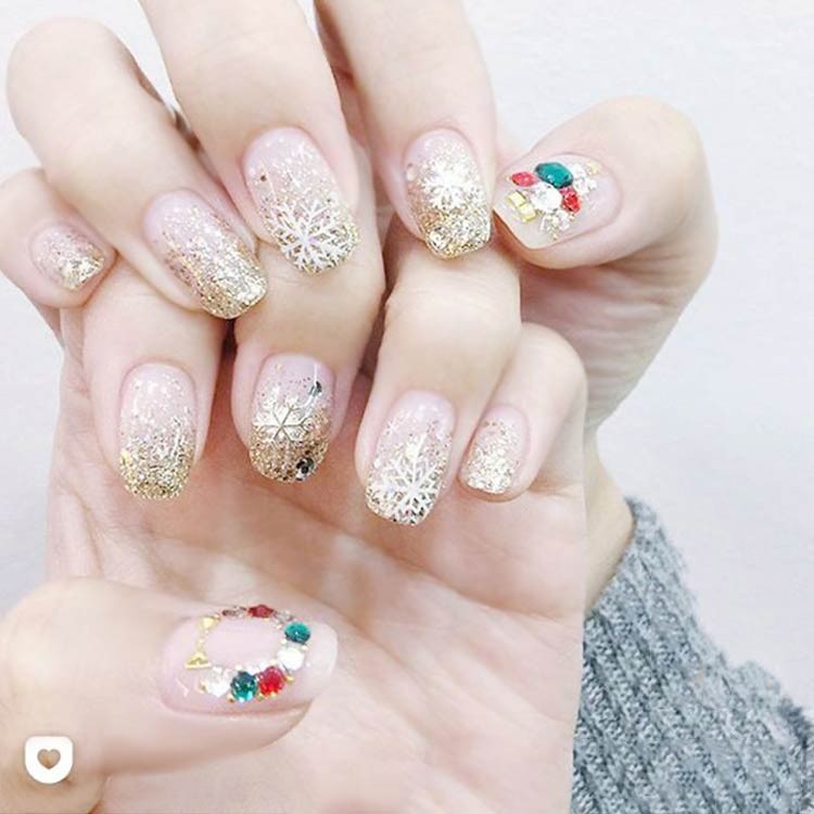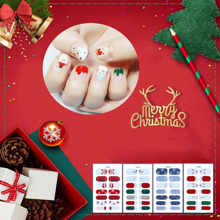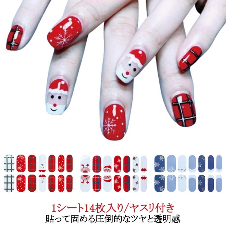 簡単 ネイルシール シェル 1シート14枚入り ヤスリ付き ネイル ジェルネイルシール 上品 指 ゴールド クリスマスデザイン セルフ ネイルアート おしゃれ かわいい