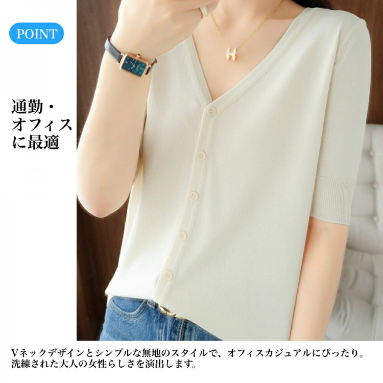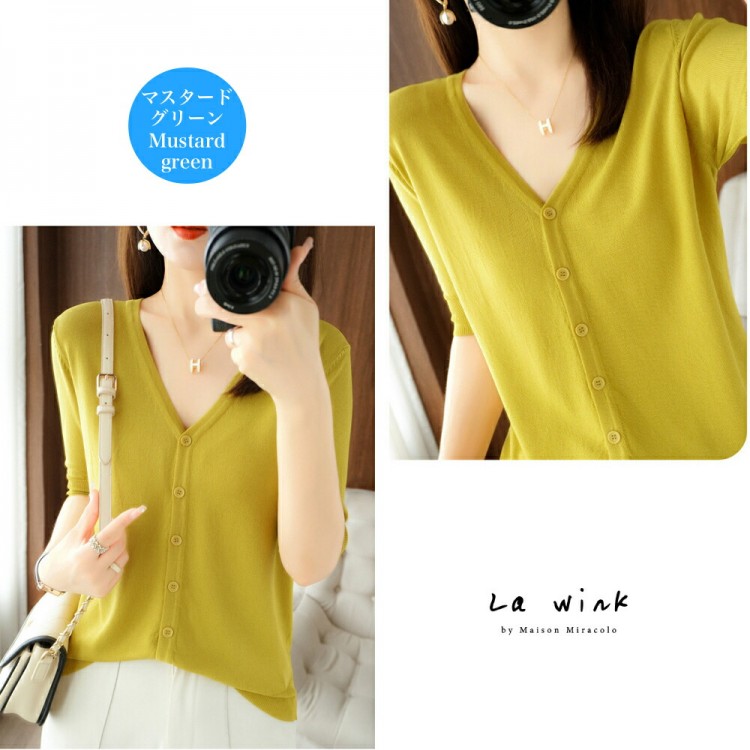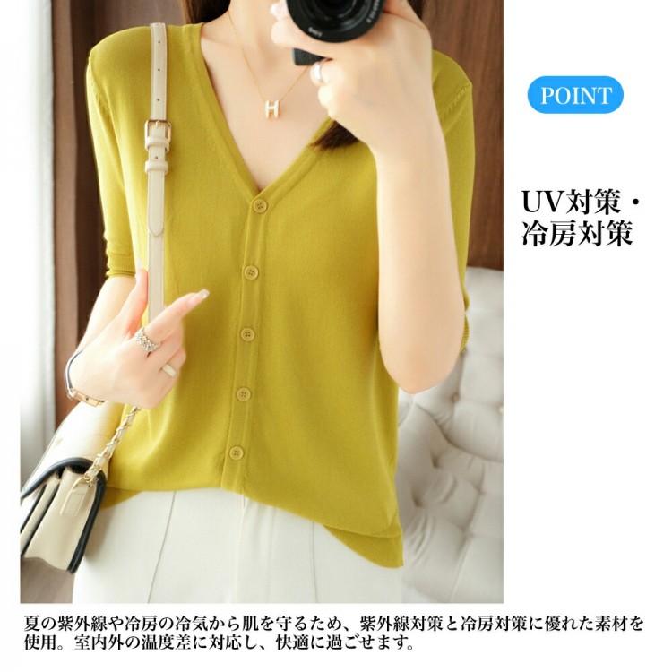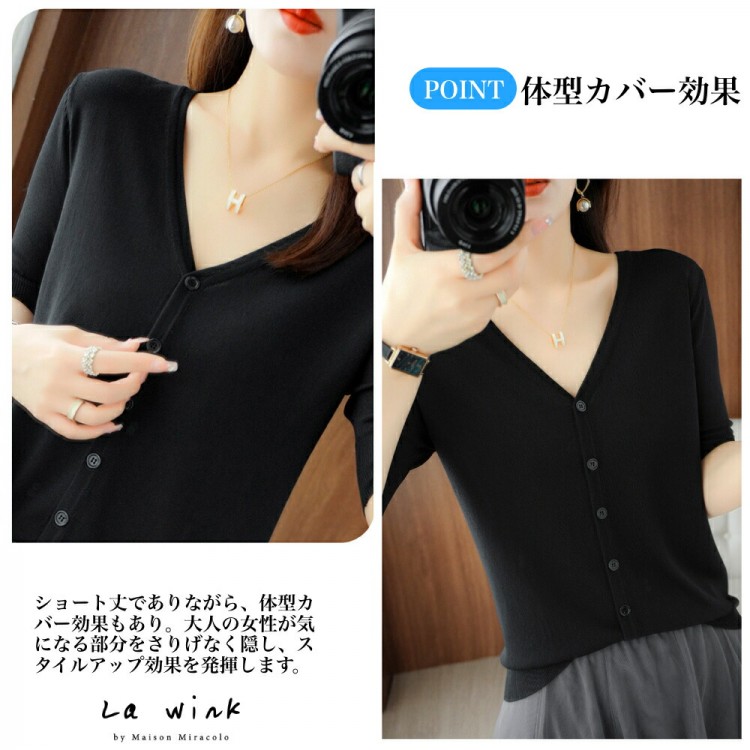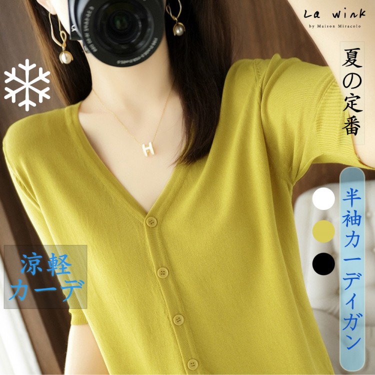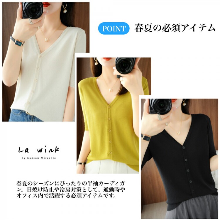 半袖カーディガン レディース 半袖 秋 ブラック ホワイト マスタードグリーン アイボリー(乳白色) M(43kg-50kgおすすめ) L(50kg-63kgおすすめ) XL(63kg-70kgおすすめ)