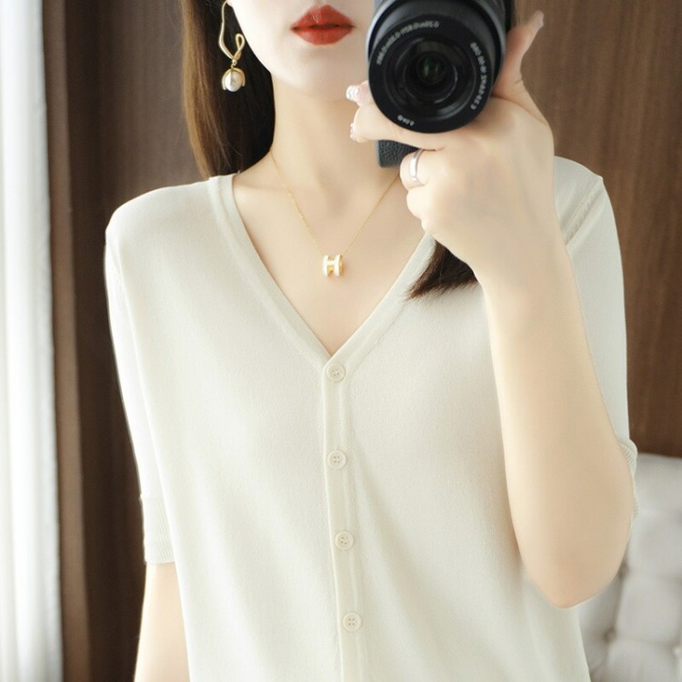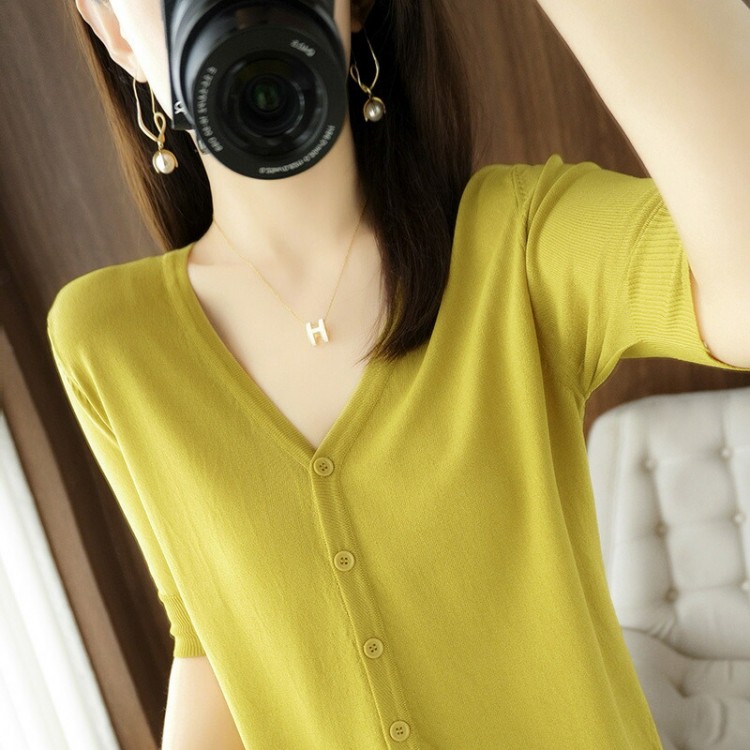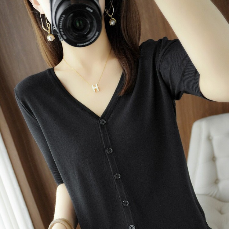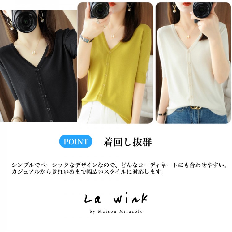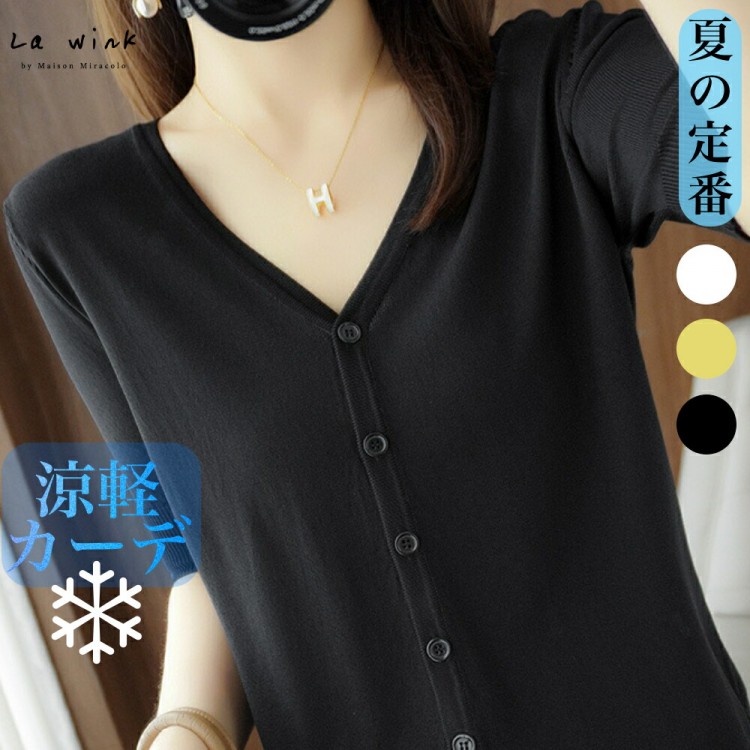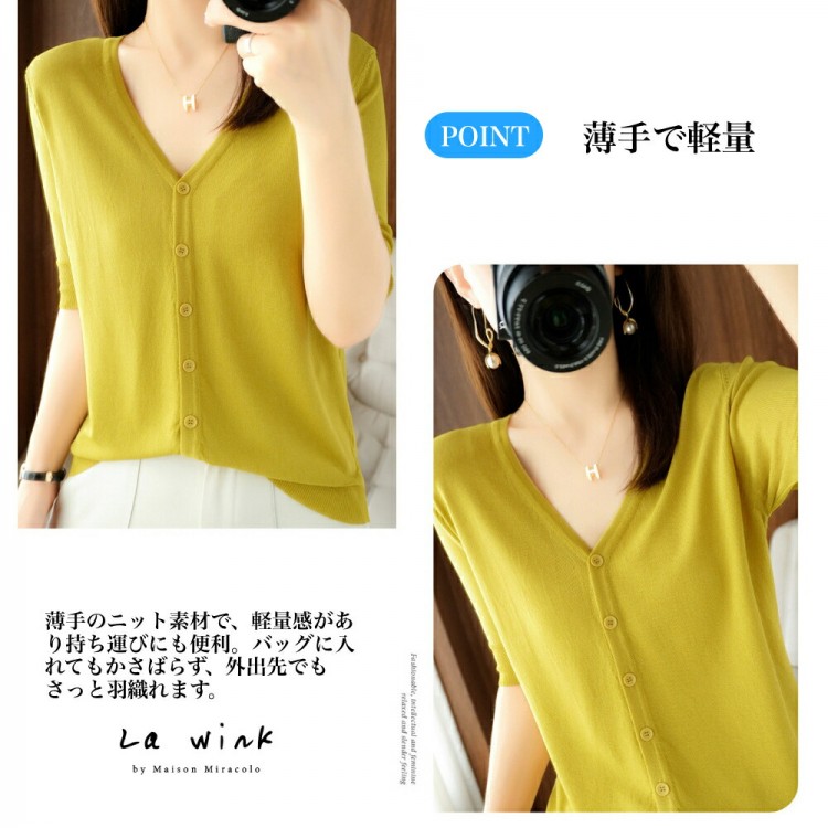半袖カーディガン レディース 半袖 秋 ブラック ホワイト マスタードグリーン アイボリー(乳白色) M(43kg-50kgおすすめ) L(50kg-63kgおすすめ) XL(63kg-70kgおすすめ)