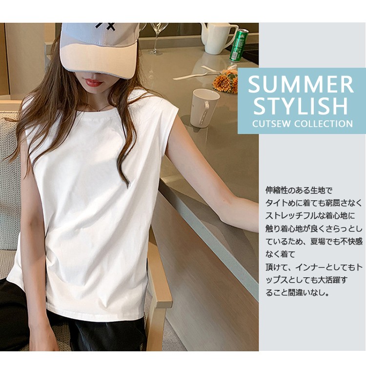 タンクトップレディースTシャツノースリーブUネックロゴプリント
