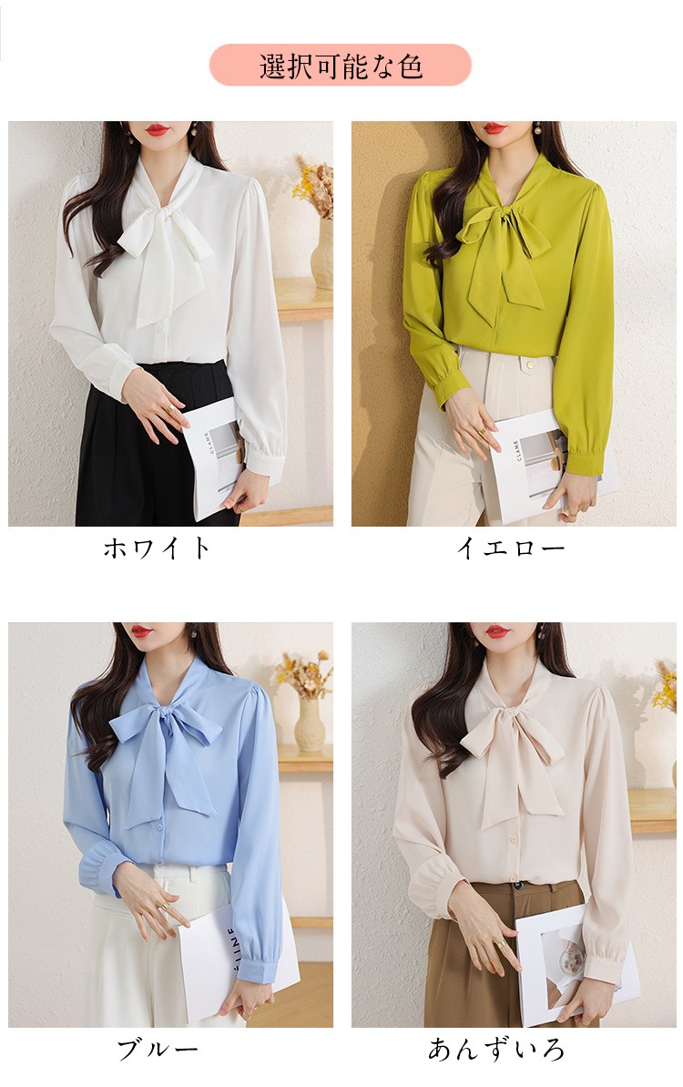 レディース ブラウス ボウタイ リボン レディースファッション 特集 ホワイト イエロー ブルー あんずいろ S M L XL XXL