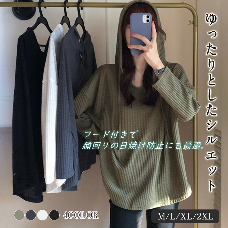レディース トップス フード付き パー レディースファッション 特集 ブラック ダークグレー ホワイト グリーン M L XL 2XL