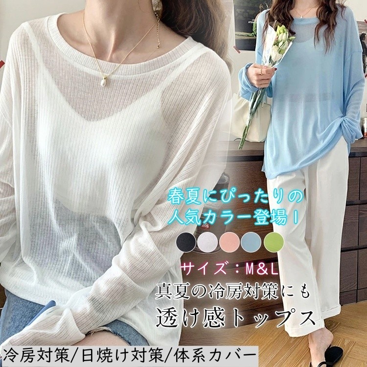 レディース シアー シャツ UV対策 トップス ニット セーター ニットキャミソール 通販 ピンク ホワイト ブラック グリーン ブルー M L
