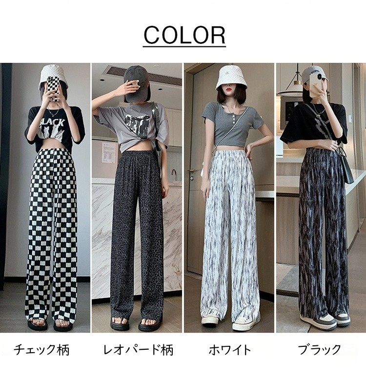 レディース ワイドパンツ 春 夏 日焼 レディースファッション 通販 チェック柄 レオパード柄 ホワイト ブラック S M XL XXL
