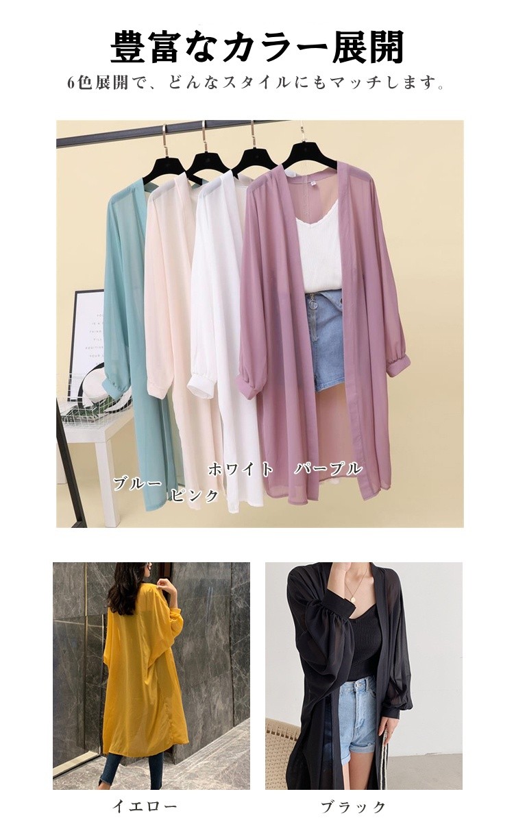 レディース カーディガン ロングカーデ レディースファッション 通販 ブルー ピンク ホワイト パープル イエロー ブラック