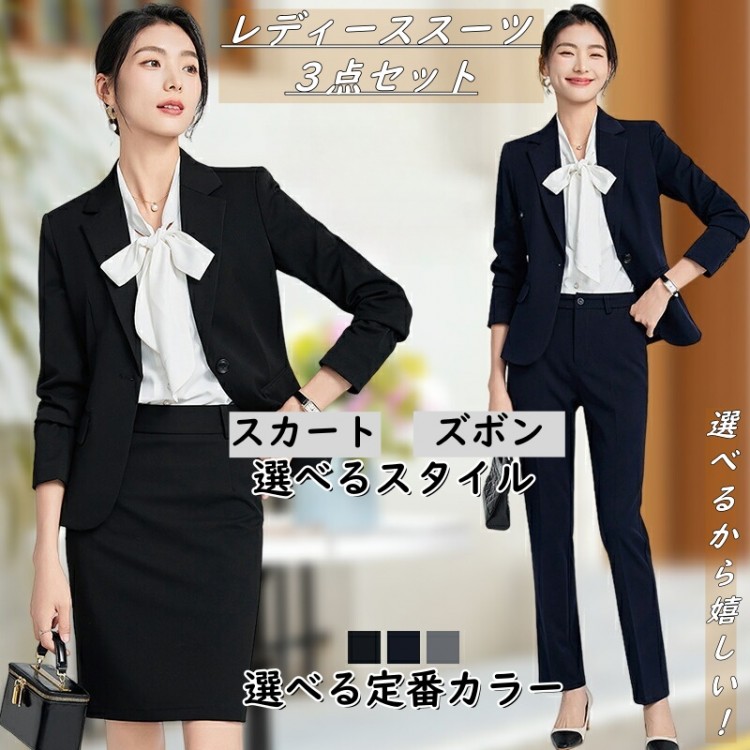 レディース スーツ 3点セット パンツ スーツ セットアップ スカートスーツ 豊富 グレー ブラック ネイビーブルー S M L XL XXL XXXL XXXXL