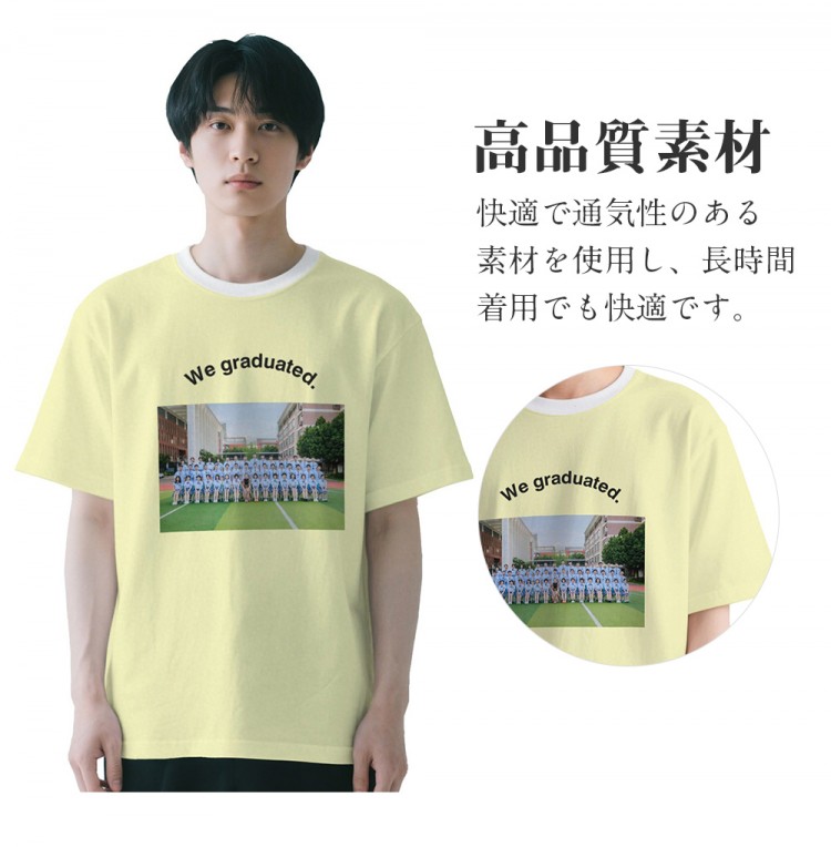 卒業記念 写真プリントTシャツ 男女兼 レディースファッション 通販 ホワイト ピンク イエロー ブルー グレー S M L XL 2XL 3XL