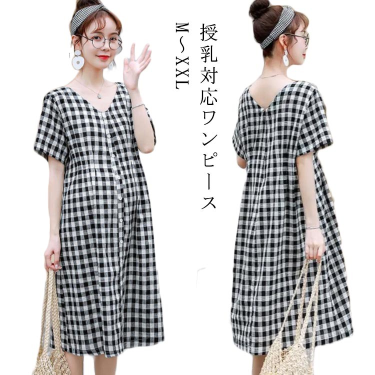 マタニティワンピース 半袖 前開き 産 キッズ ベビー マタニティ 特集 M L XL 2XL