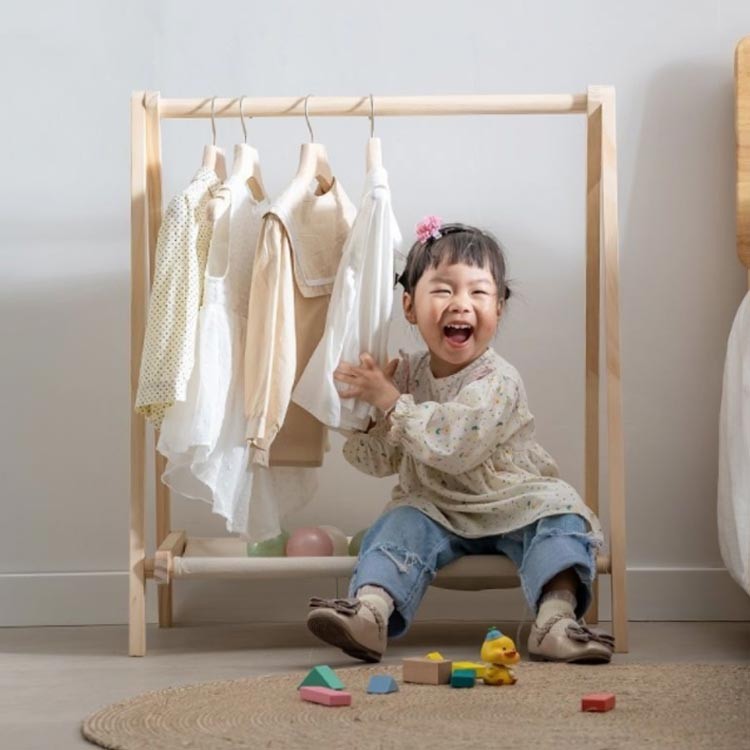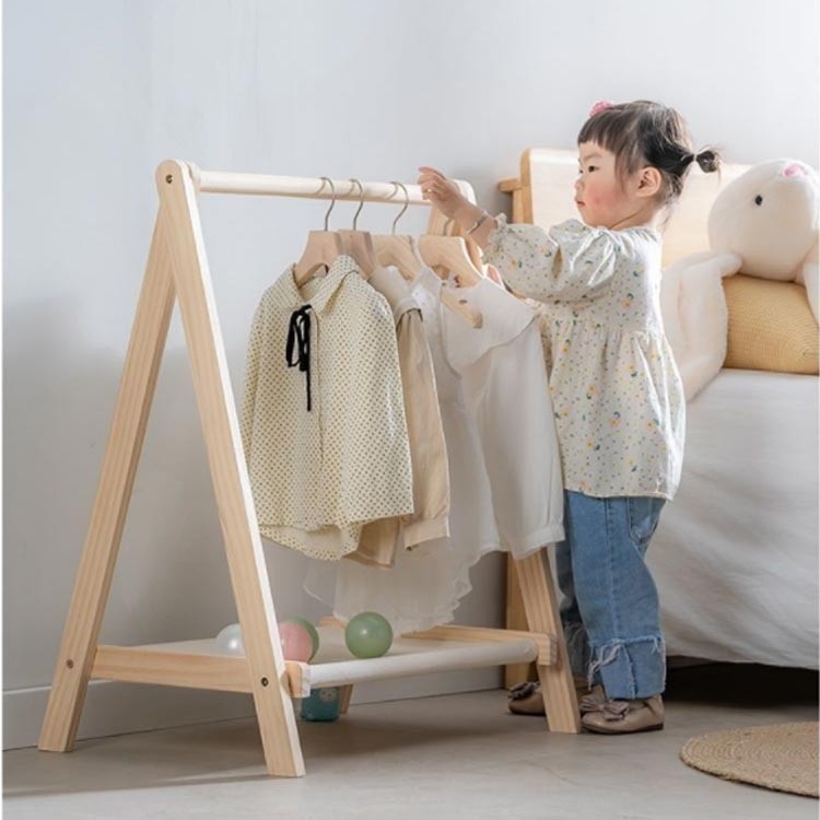 折りたたみ キッズハンガーラック 木製 63×38×80cm 63×38×100cm