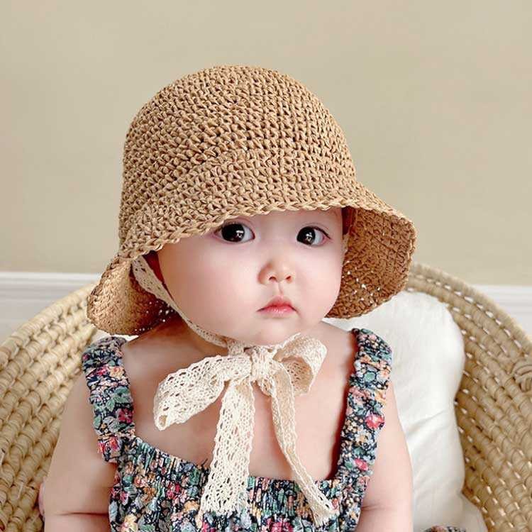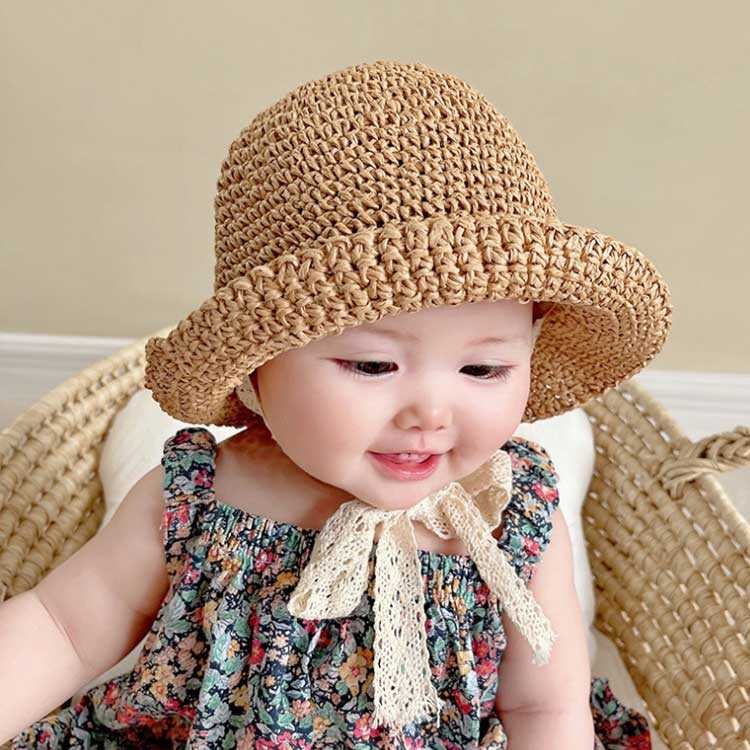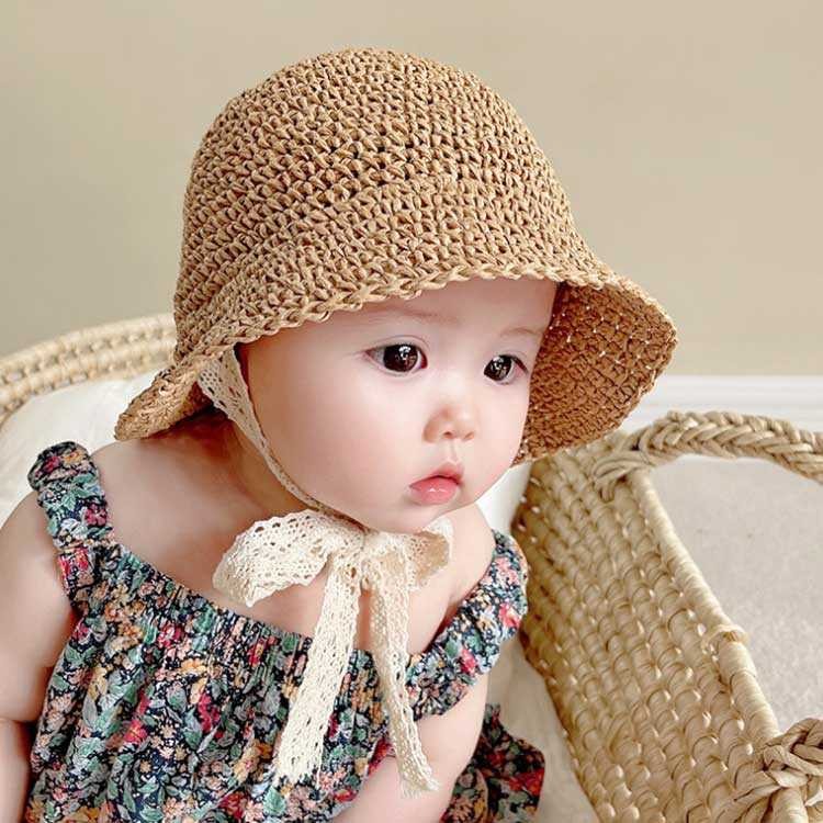 おしゃれかわいい麦わら帽子 麦わら帽子 キッズ ベビー マタニティ 新作 ダークベージュ ベージュ ピンク