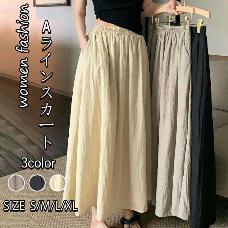 スカート ロングスカート Aラインスカ レディースファッション 通販 ベージュ ブラック グレー S M L XL
