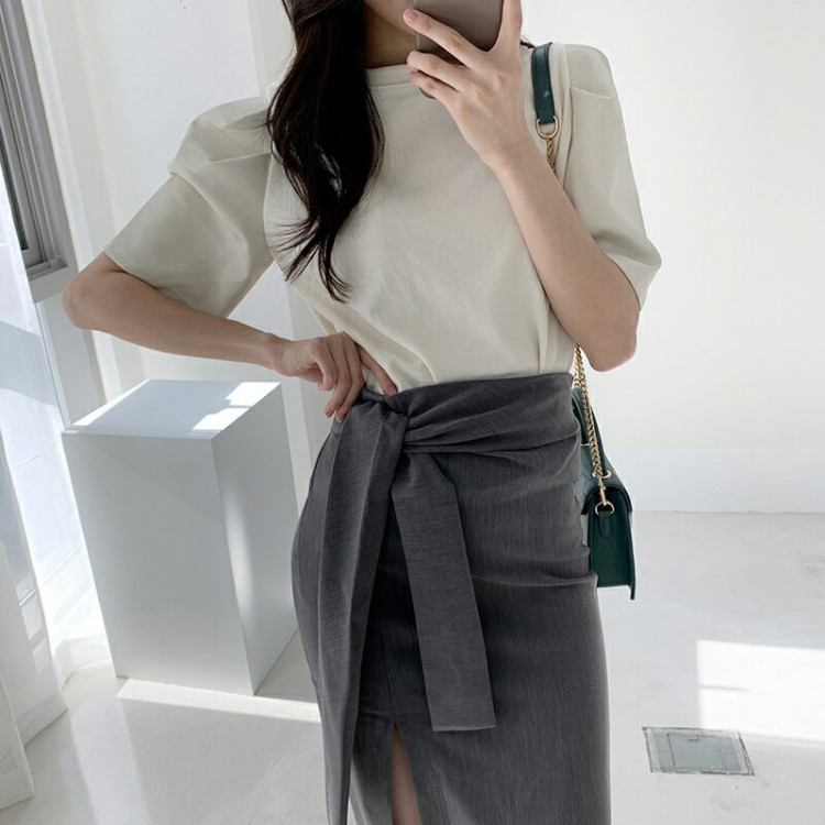 シアースリーブ ドッキングシャツ ボウタイシャツブラウス