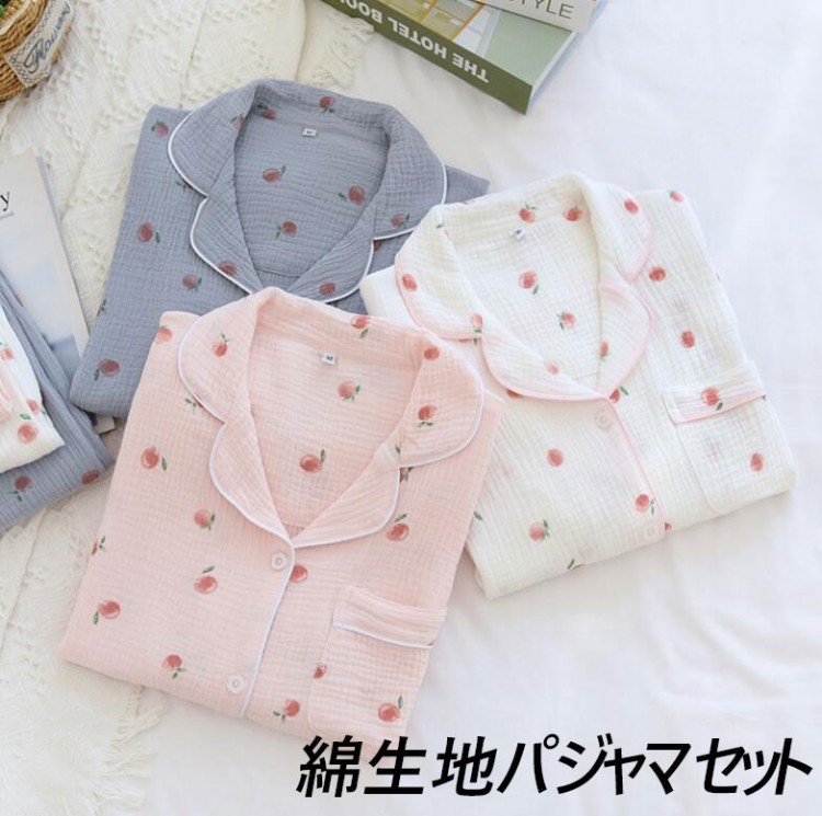 レディースパジャマ ガーゼパジャマ 部 スポーツ アウトドア 新作 M L XL ホワイト ピンク ブルー