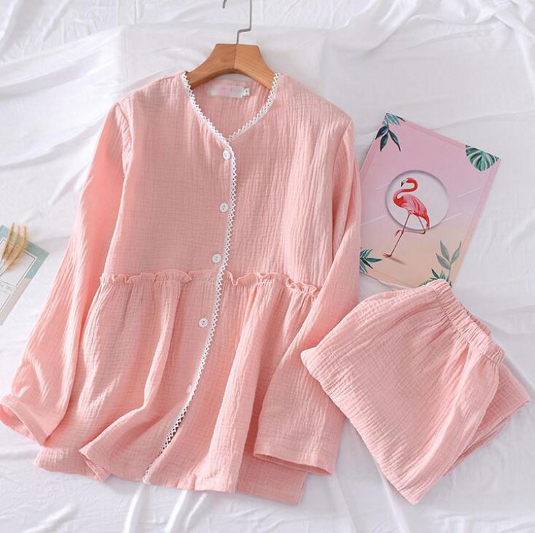 二重ガーゼパジャマ 上下セット 棉ルー テニス 振動止め 早い者勝ち M L XL ピンク グリーン ホワイト イエロー