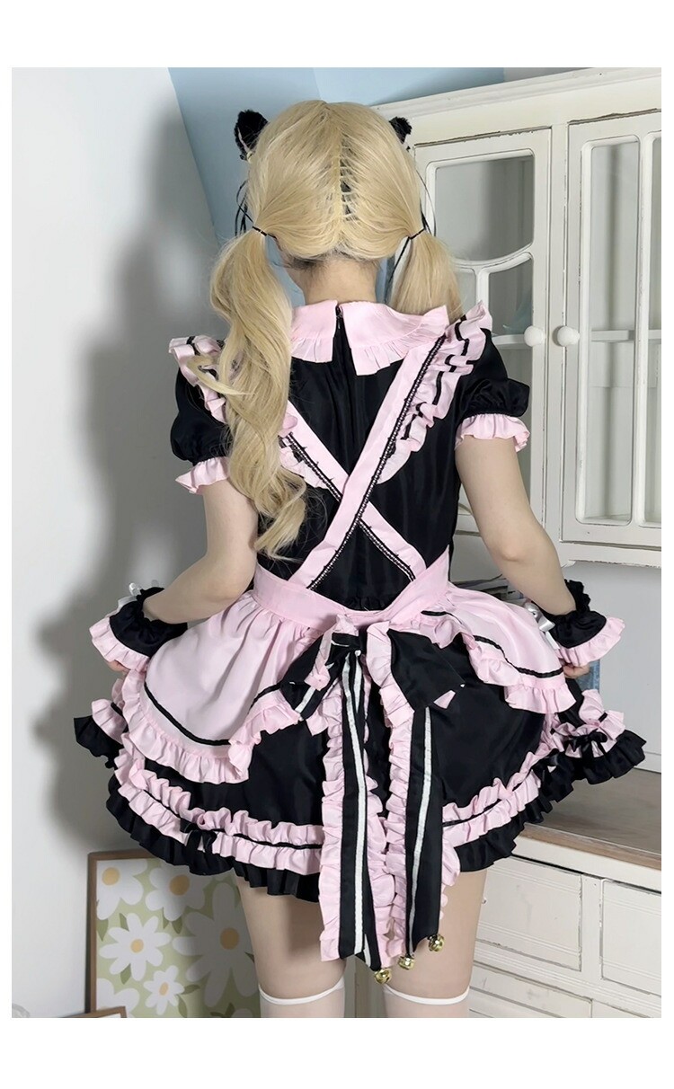 メイド服 ブラックxピンク ロリータワ コスプレ 変装 仮装 ワンピース 通販 S M L XL