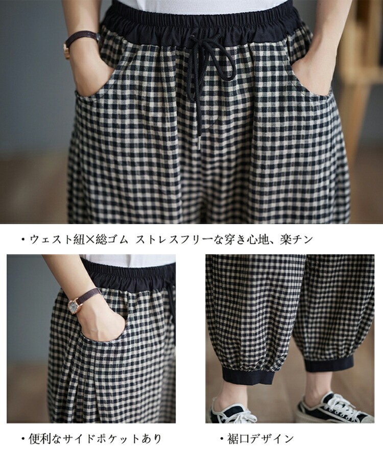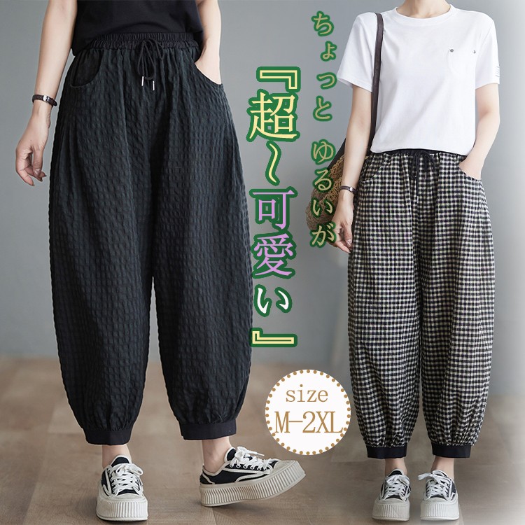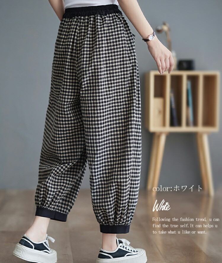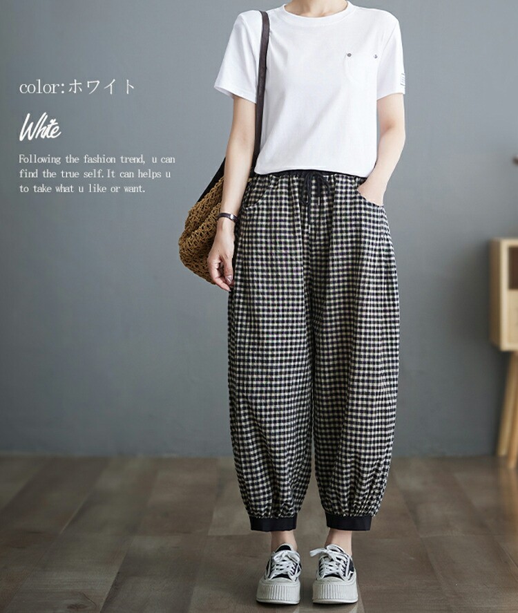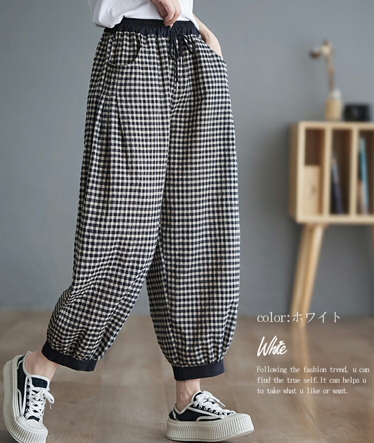チェック パンツ 春夏 ゆったり チェ M L XL 2XL ホワイト ブラック