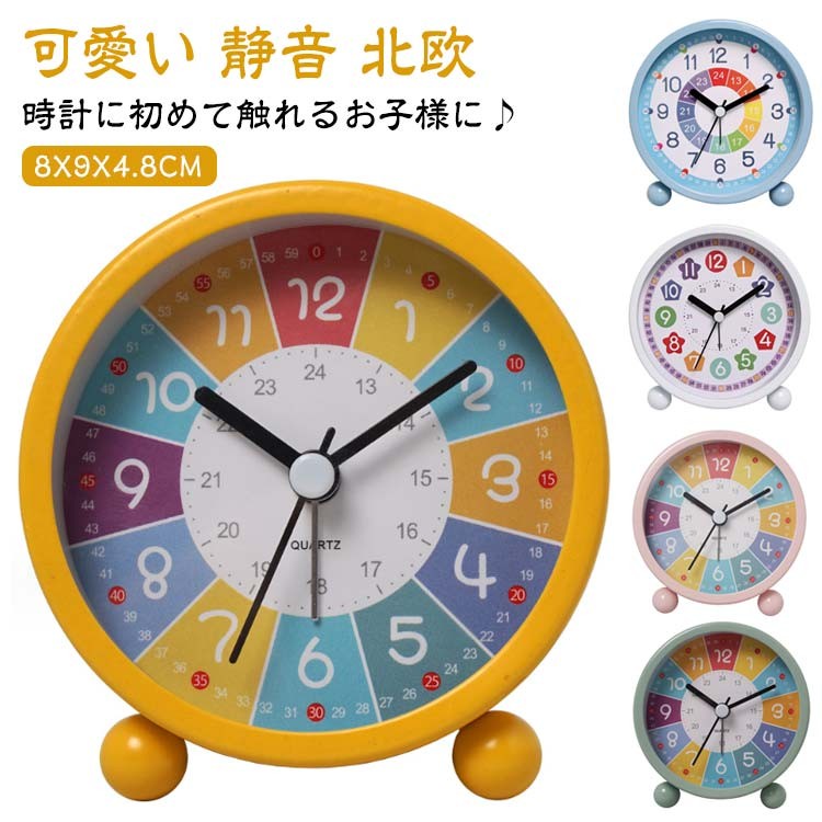 アラームクロック 知育時計 小学生 可 イエロー グリーン ブルー ピンク ホワイト ホワイトB ブルーB ピンクB