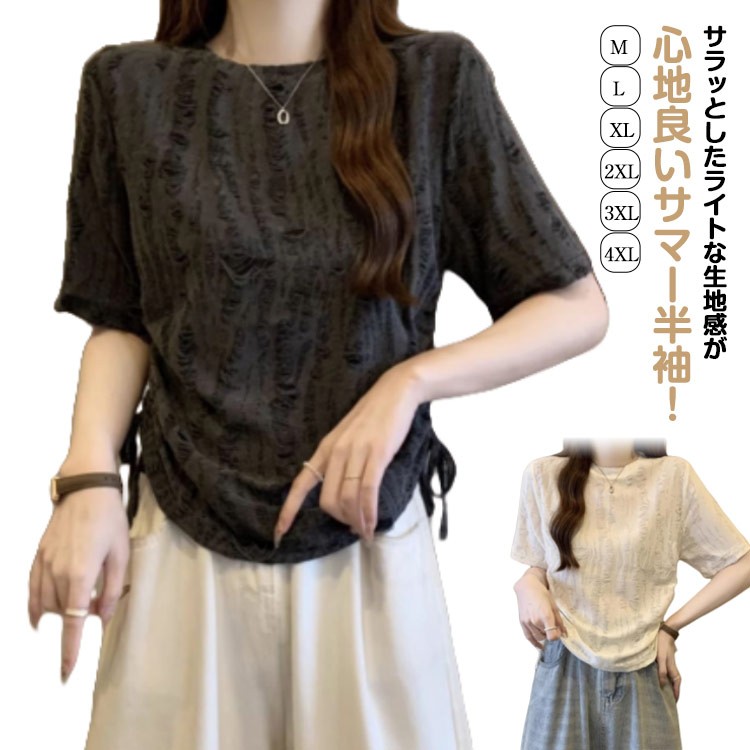 ゆったり ティーシャツ 体型カバー ニ レディースファッション 特集 アイボリー グレー M L XL 2XL 3XL 4XL