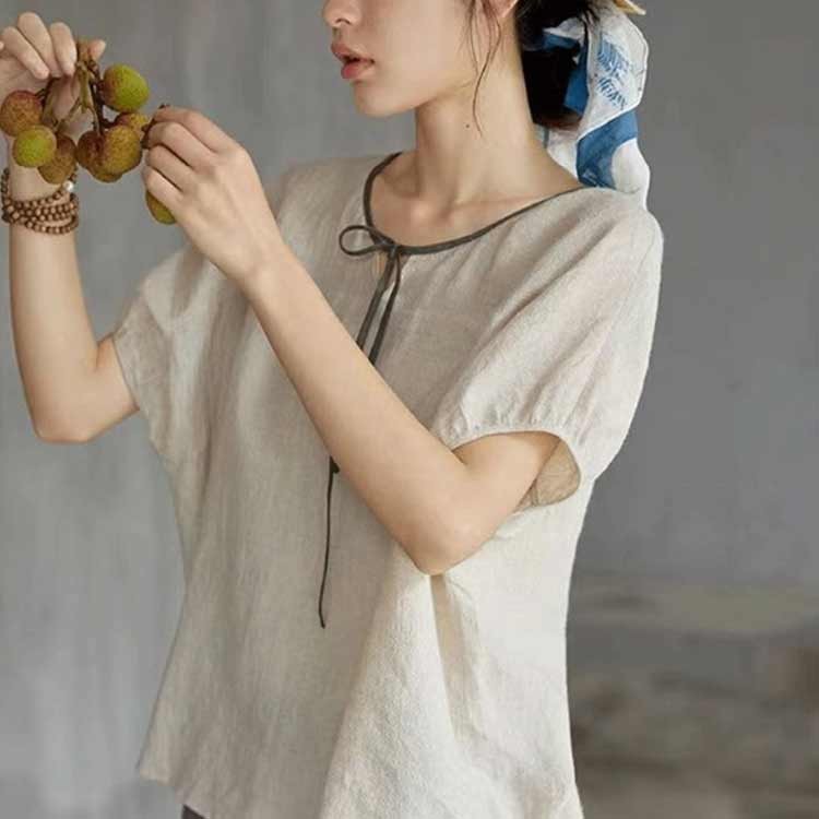 シアースリーブ ドッキングシャツ ボウタイシャツブラウス