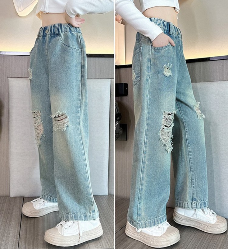 送料無料 人気商品 春 夏 秋 新作 子供服 おしゃれ 女の子 デニム ダメージ ジーンズ キッズ ダンス衣装 ジュニア カジュアルパンツ 翌日発送