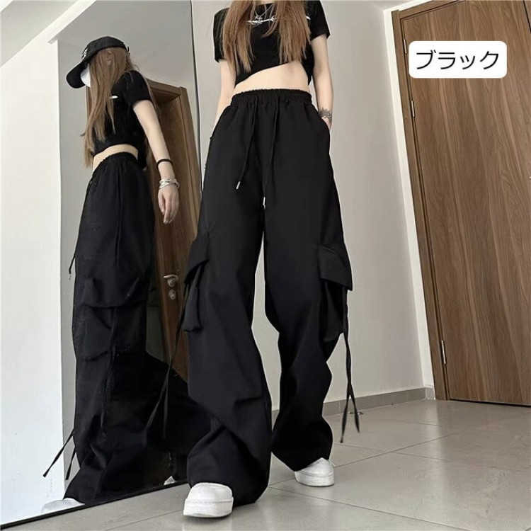 カーゴパンツ レディース ワイドパンツ ブラック ベージェ ピンク グリーン ホワイト グレー ブルー イエロー S M L XL XXL
