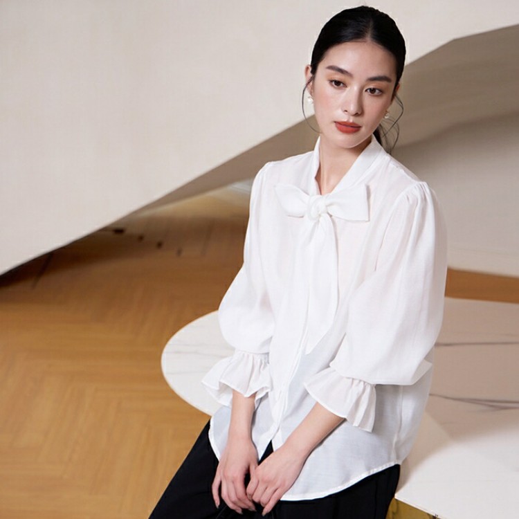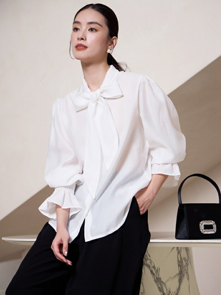 シアースリーブ ドッキングシャツ ボウタイシャツブラウス