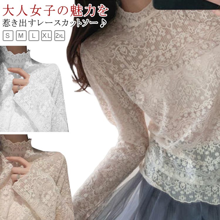 レースインナー プルオーバー カットソ トップス Tシャツ カットソー 特集 ベージュ裏起毛なし ホワイト裏起毛あり ベージュ裏起毛あり ホワイト裏起毛なし S(体重40-50kg) M(体重50-57.5kg) L(体重57.5-65kg) XL(体重65-72.5kg) 2XL(体重72.5-80kg)