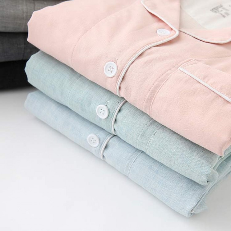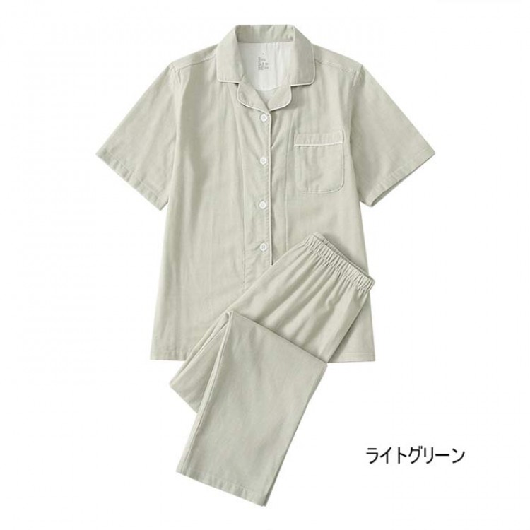 ダブルガーゼ パジャマ レディース 半 テニス 振動止め 早い者勝ち ライトピンク ライトグリーン ブルー アイボリー M L XL
