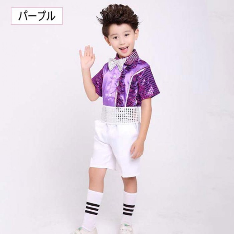キッズ ダンス衣装 スパンコール 半袖 トップス ニット セーター ニットキャミソール 特集 ピンク ブルー グリーン フューシャピンク イエロー パープル 100cm 110cm 120cm 130cm 140cm 150cm 160cm